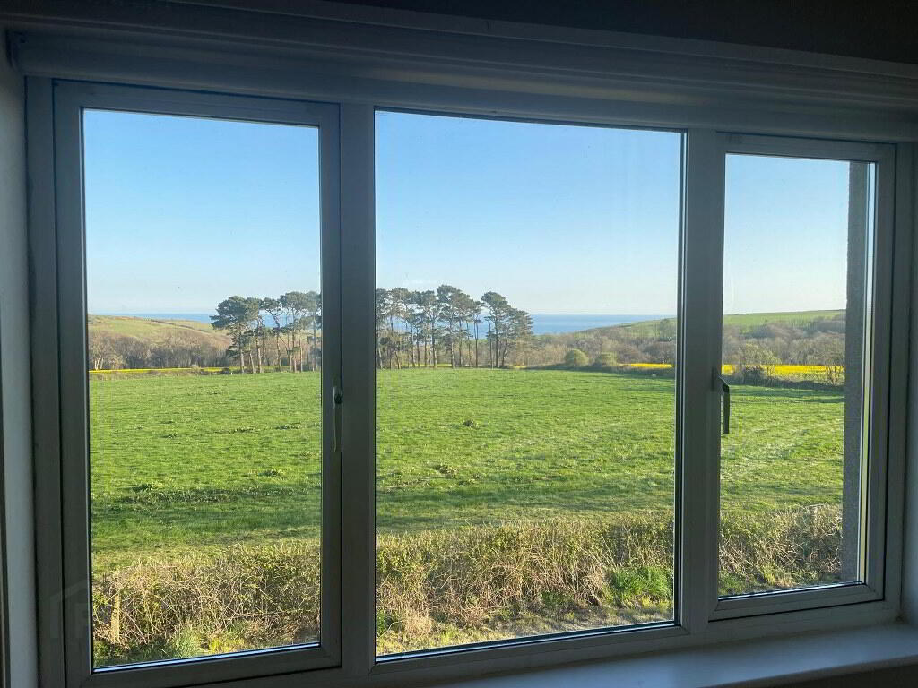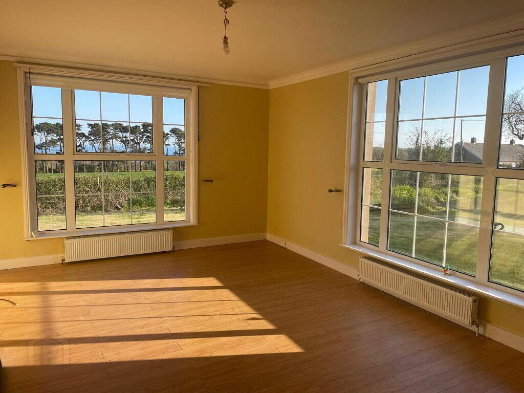 3.40m x 3.00m Southerly aspect with views towards coast. Book shelving, open fireplace with brick surround