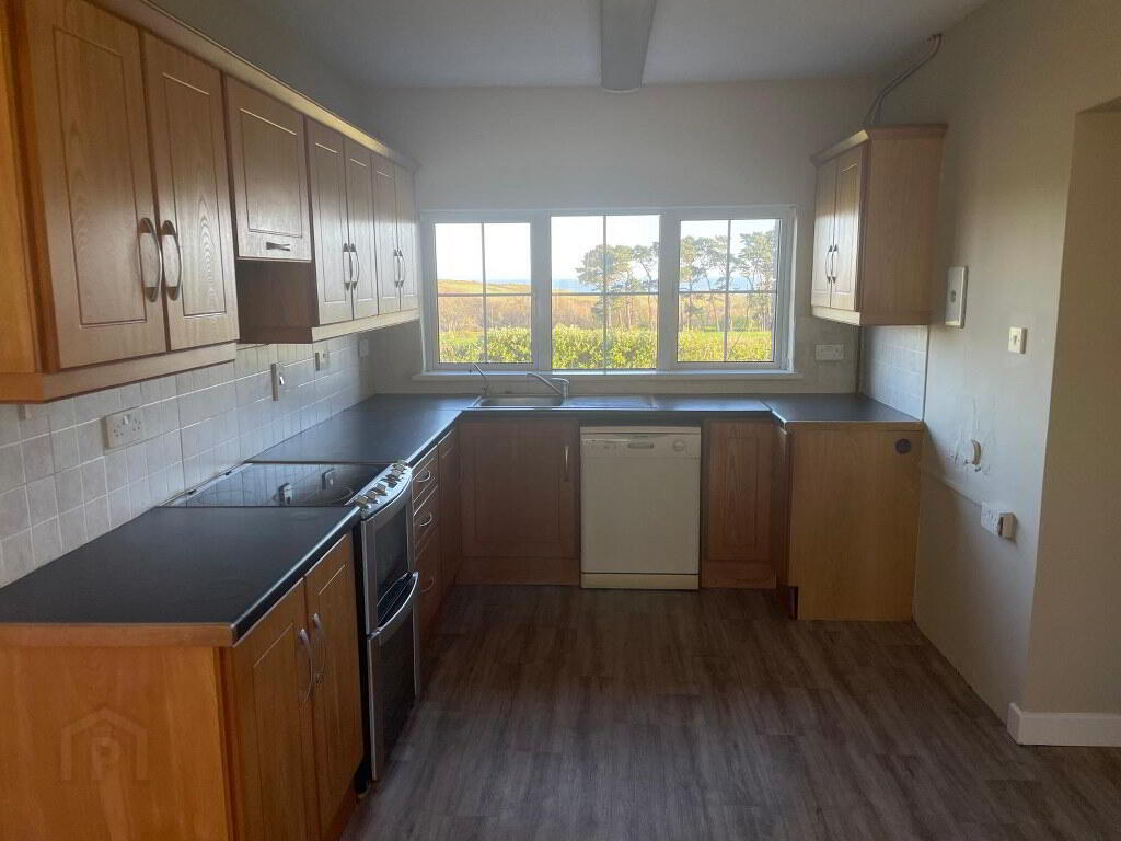 5.50m x 2.70m Generous selection of floor and eye level fitted kitchen units incorporating extractor with tiled splashback. Dual aspect looking over and rear gardens. Walk in shelved pantry off. Off kitchen, corridor with access to front and rear gardens.