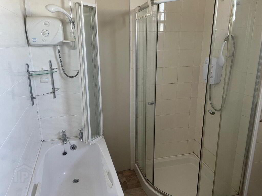 2.70m x 1.95m Full suite to include independent shower stall, two electric showers both shower stall and bath surround fully tiled.