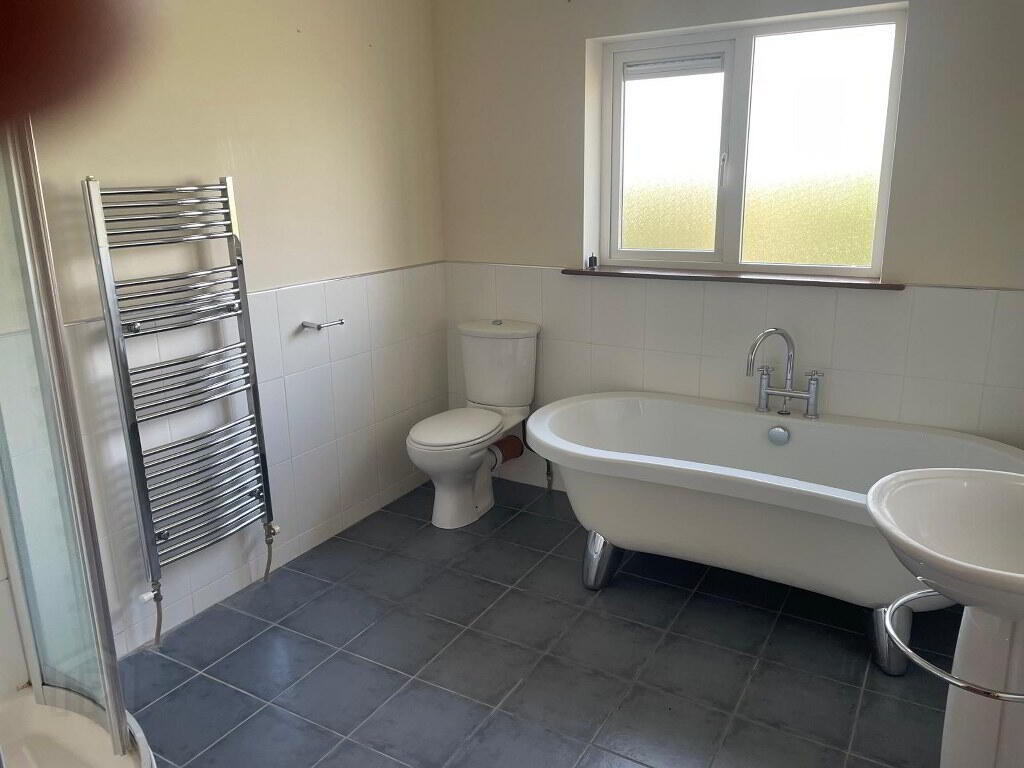3.00m x 2.80m Full bathroom suite to include generous corner shower unit and feature bath. Generous tiling incorporating heated towel rail