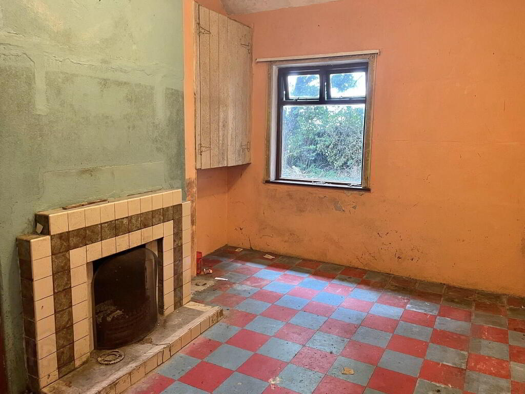 4.40m x 3.00m Open fire with a tiled surround, lino flooring and storage units.
