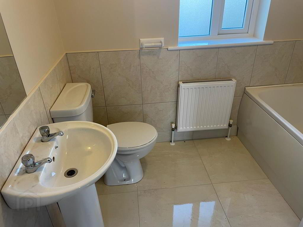 2.25m x 1.70m Full bathroom suite, floor tiled, walls partially tiled