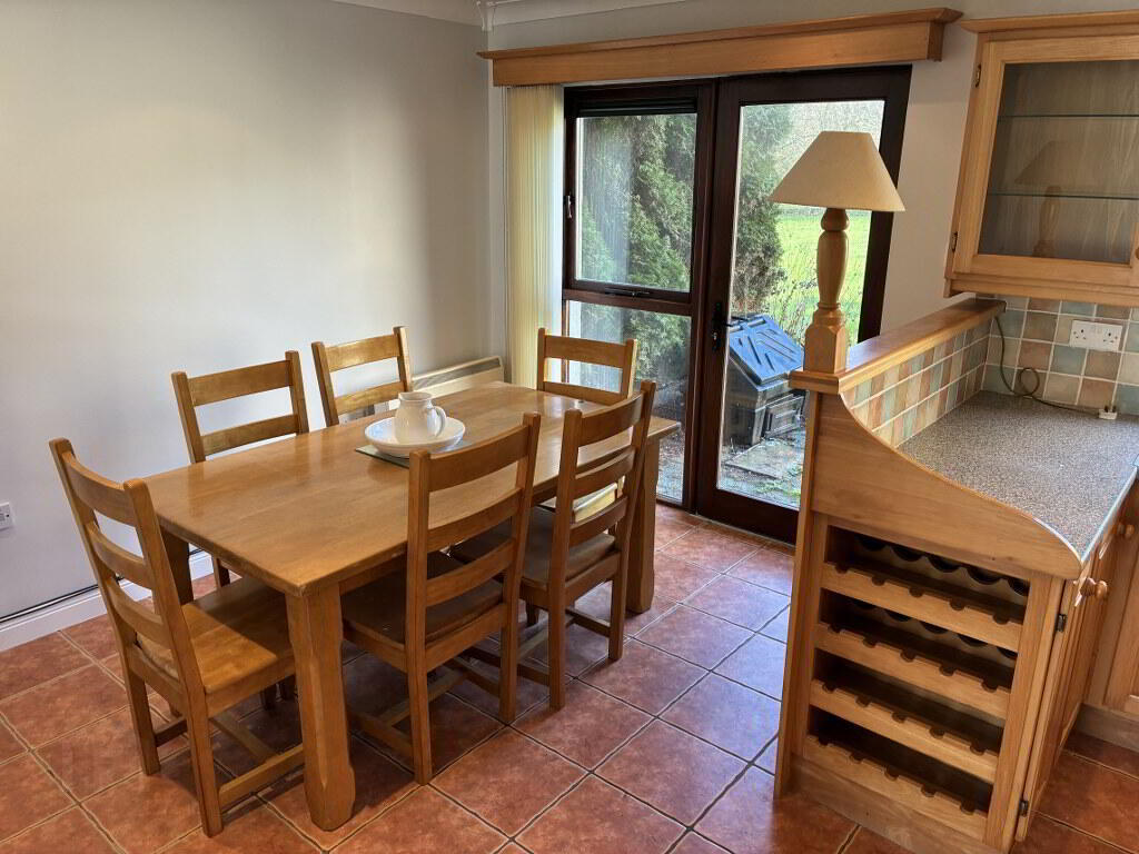 4.70m x 1.80m Floor & Eye level solid kitchen units, tiled floor and splashback, plumbed for washing machine, integrated dishwasher Dining Area: 3.4 x 3.2 - Stairs to first floor, French doors to south west facing patio.