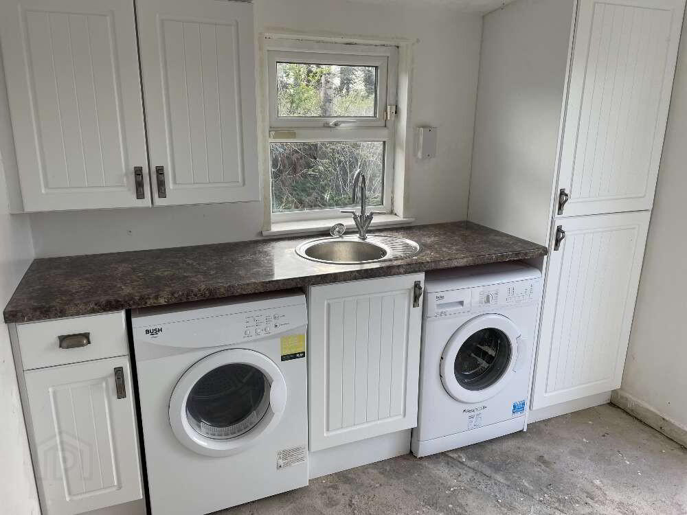 2.70m x 2.25m Floor & eye level unit, Washing Machine & Dryer, door to rear.