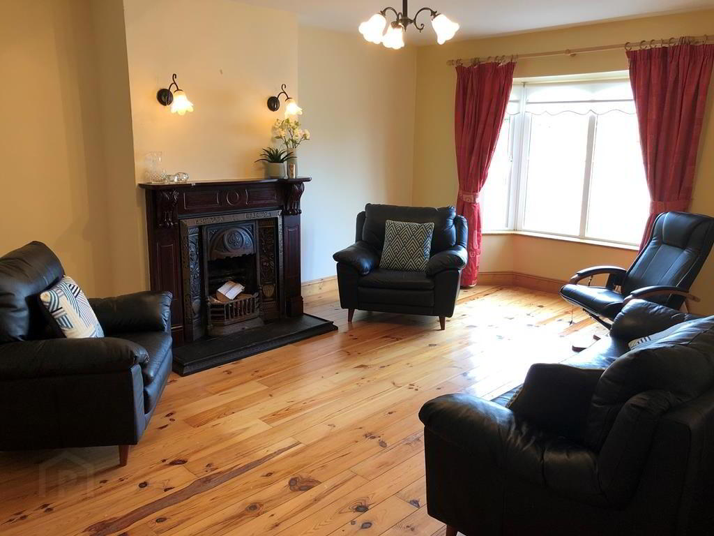 5.44m x 4.01m Pine flooring, Bay window, Mahogany fireplace with ornate insert, TV point, wall lights.