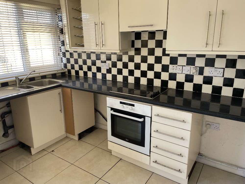 5.20m x 3.40m Floor & Eye level units, built in oven & hob, Tiled floor & splashback, French doors to rear garden including patio area.