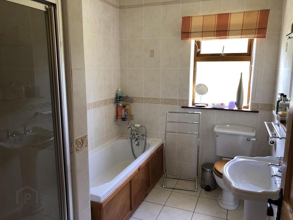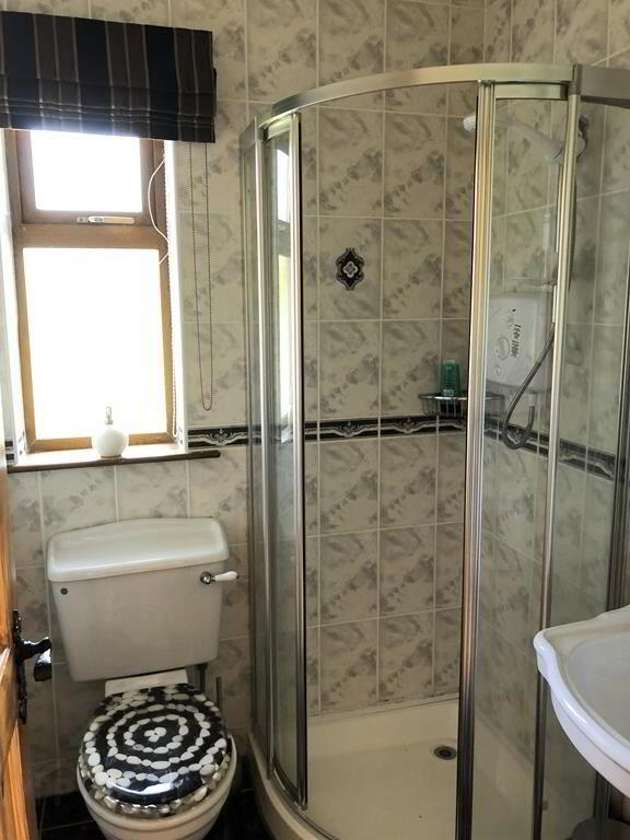 2.84m x 2.06m Full bathroom suite, fully tiled, separate shower cubicle, Triton T90si shower