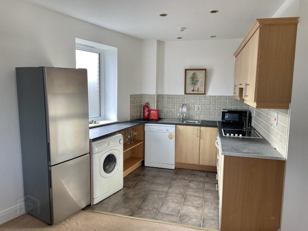 9.14m x 5.70m Open Plan Kitchen/Dining/Living Area. Kitchen - Built in Oven & Hob, Extractor, Tiled Floor & Splashback, Plumbed for washing machine & dryer. Living/Dining Area - Carpet flooring, TV point, French doors leading to spacious balcony having fabulous views.