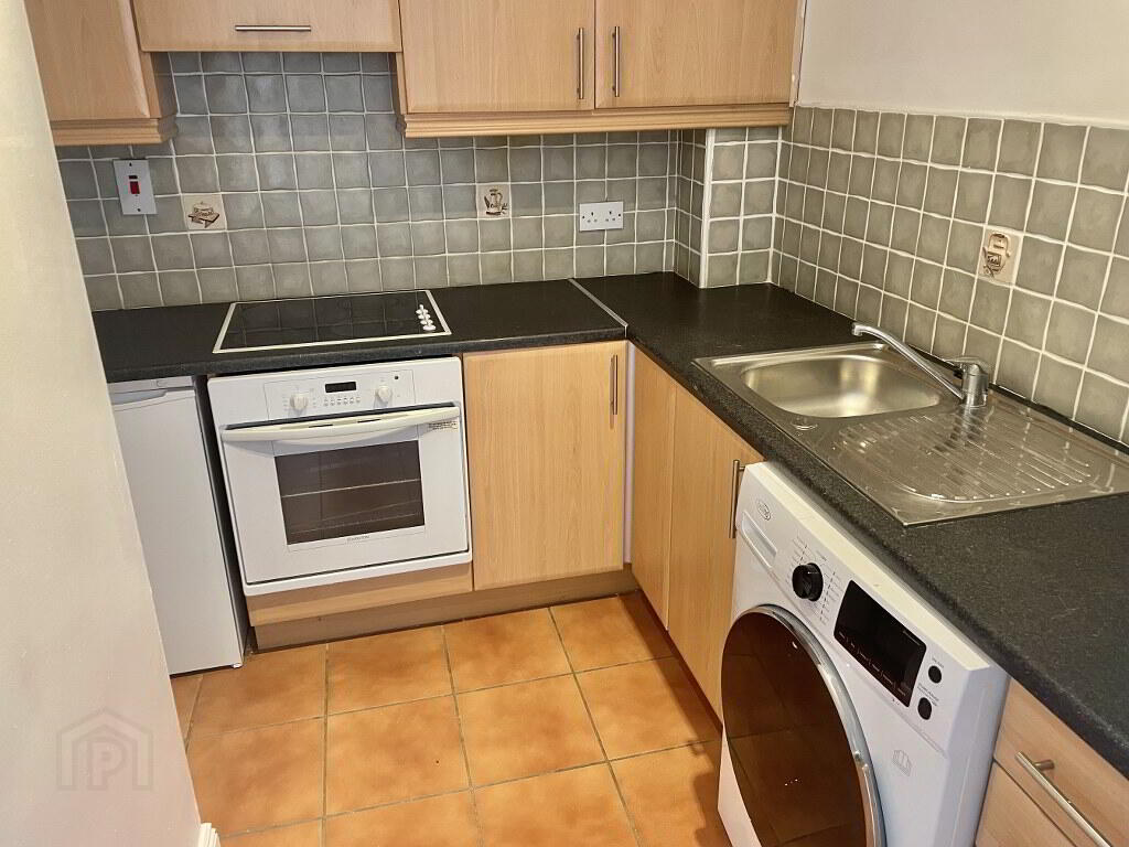 2.50m x 2.30m Floor & Eye level units, plumbed for washer/dryer, built in oven and hob, under counter fridge.