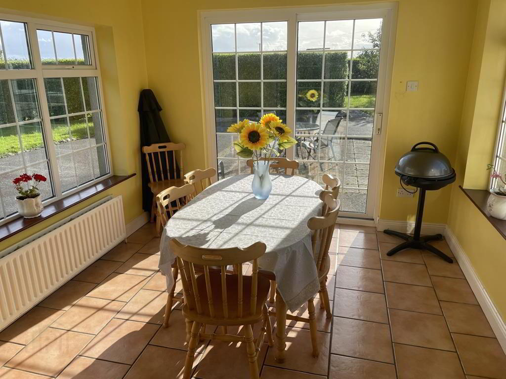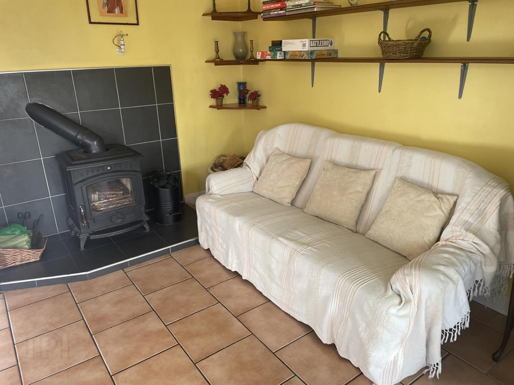 5.30m x 3.10m Floor & eye level units, tiled floor and splashback, TV point, solid wood burning stove, tiled surround and hearth, Utility off, Sunroom off.