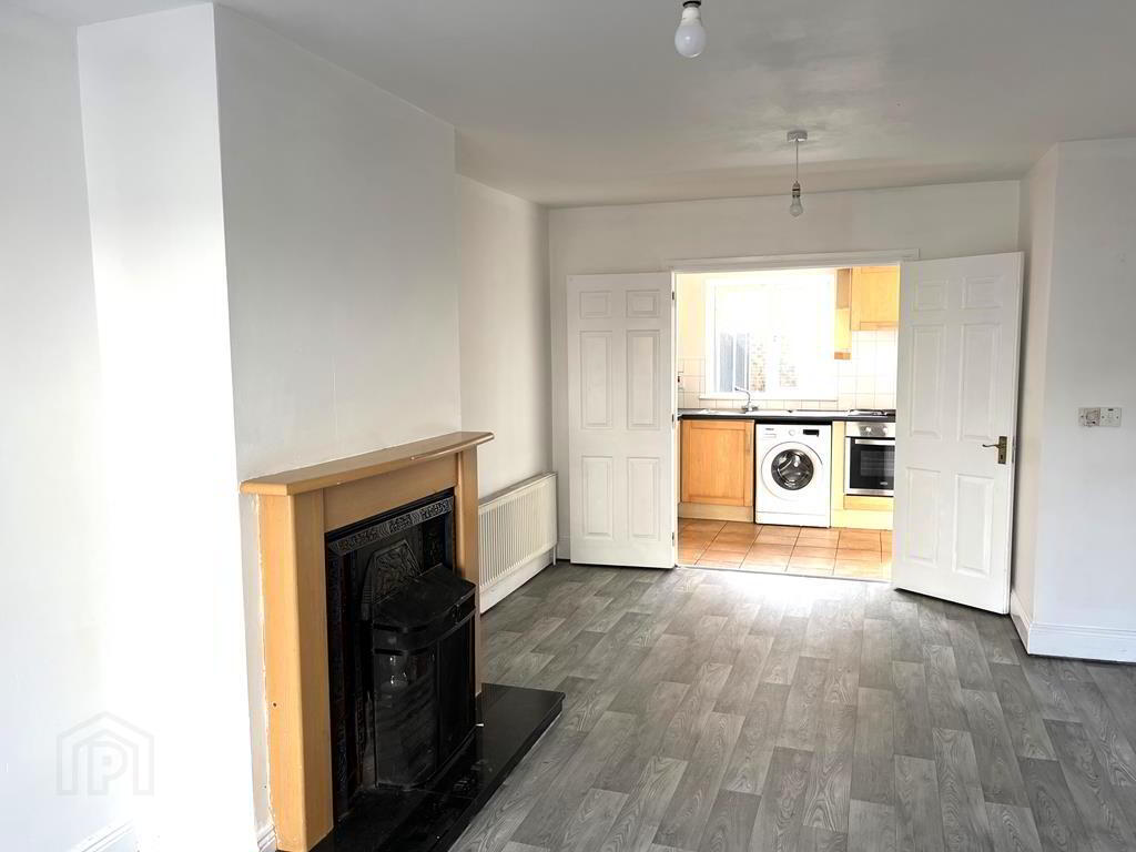 4.49m x 2.00m Floor & Eye level units, plumbed for washing machine, built in oven and hob, guest WC off, door to rear.
