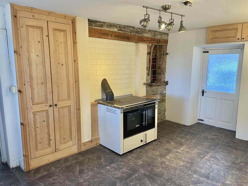 4.80m x 3.00m Wood burning stove, wall lights, tiled wall shelved alcove.