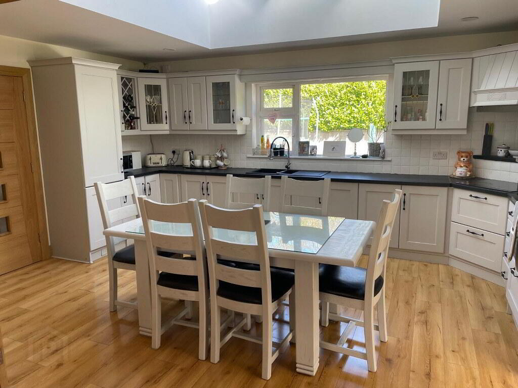 5.34m x 3.75m Floor & eye level units, built in Hoover oven, integrated Electrolux fridge freezer, extractor, vaulted roof with generous roof lighting. utility off.