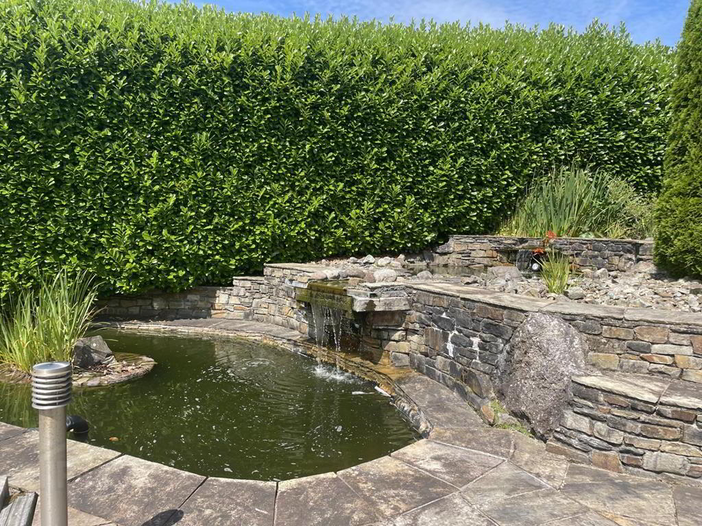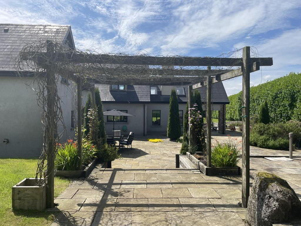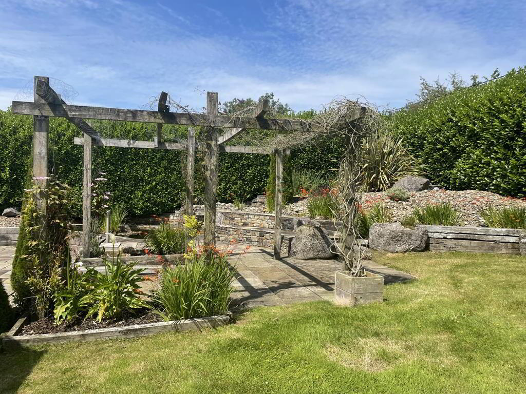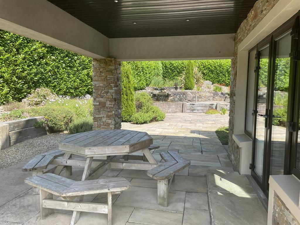 -Detached Garage incorporating boiler house with independent access -Car port -Extensively landscaped gardens incorporating expansive patio, pergolas, raised ponds, -Secure electronic gated access