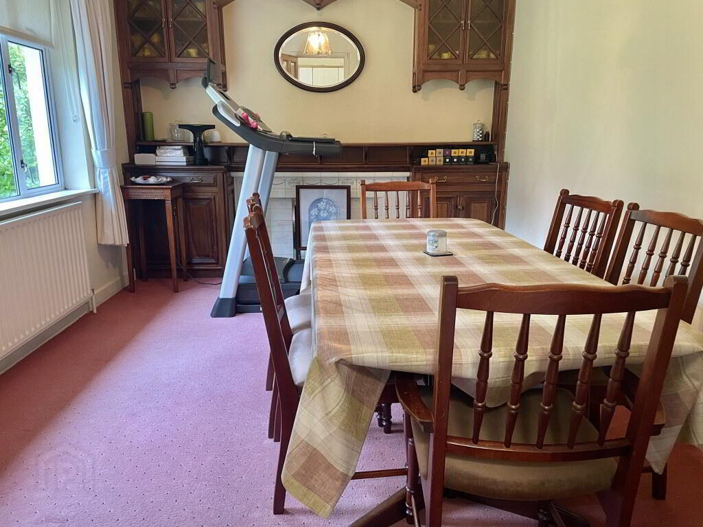 4.55m x 3.00m Carpet floor, door off to both kitchen and sitting room. Open fire with tiled surround incorporating into handcrafted hardwood display unit