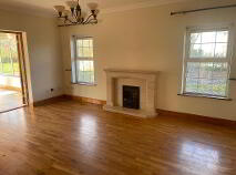 3.95m x 5.16m Stone fire surround with gas fire insert. Sun room off with wrap around windows overlooking garden